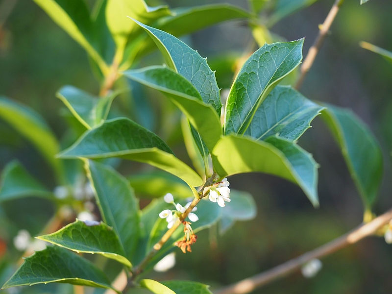 Osmanthus is a family of evergreen shrubs native to East Asia, many of which have small fragrant flowers in late summer or autumn. The species Osmanthus aquifolium (also referred to as O. heterophyllus) is particularly useful for hedging as it has spiky ‘holly’ leaves. The plant grows fairly slowly and does not need much pruning - just a trim of straggly branches in spring to keep it a dense shrub of around 1.5 to 2 metres height.